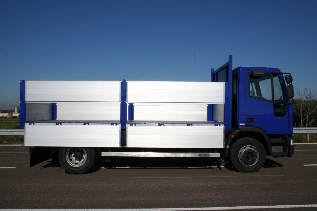 Allestimento con ribaltabile trilaterale con sponde e sovrasponde in alluminio TR6