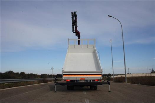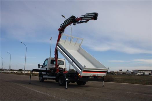 | Iveco Daily 65C/E4 passo 3750 mm allestito con gru e ribaltabile trilaterale. Marca della gru HC INDUSTRIE. Marca del ribaltabile Ricciato. |