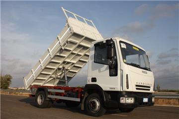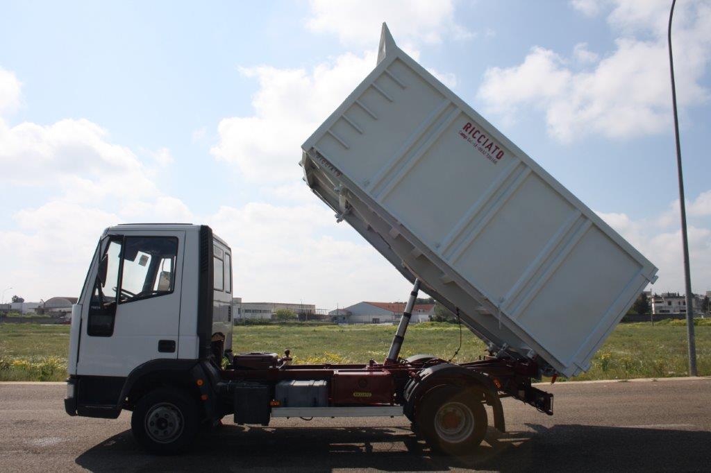 | Iveco Eurocargo 75, allestito con ribaltabile trilaterale di marca Ricciato, con configurazione 4x2 e lunghezza passo di 3105 mm. |