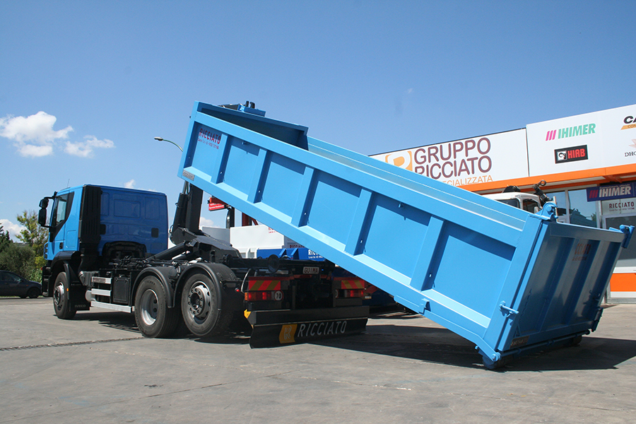 | Iveco Stralis 260E33 passo 4200 + 1395 con impianto scarrabile Guimatrag BL 26 con rullo a discesa verticale. Con classe di emissione EURO 4. |